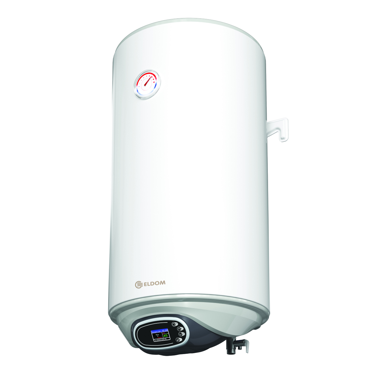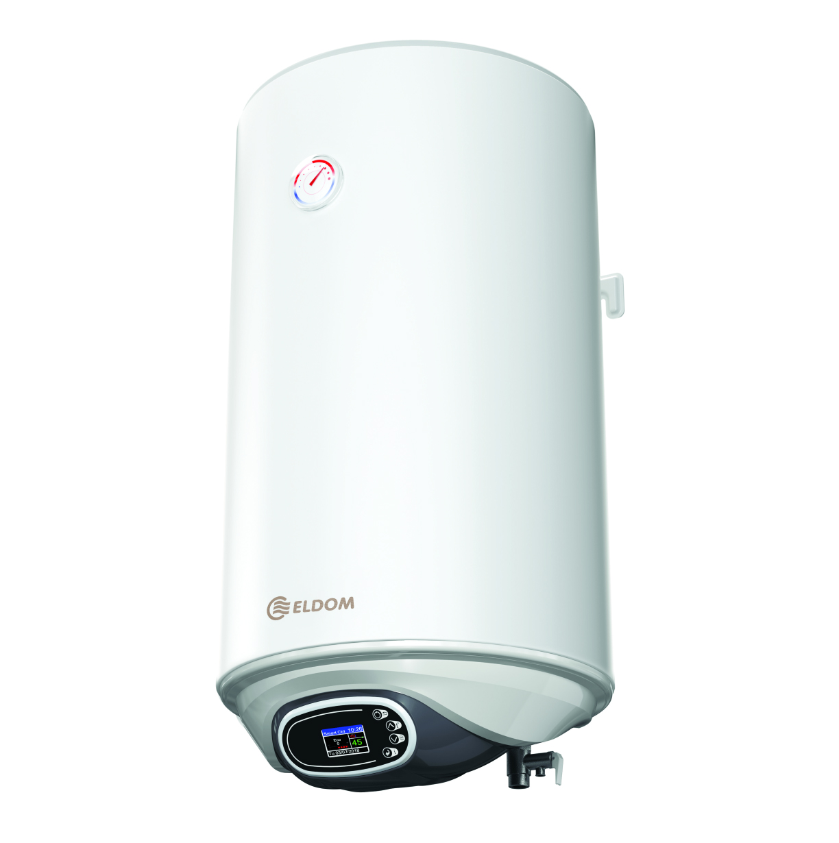 Водонагрівачі серій Eldom EUREKA виробництва Eldominvest є надійними енергоеффективними виробами з широким ассортиментом. Модельний ряд включає в себе весь об`ємний ряд побутових водонагрівачів вертикального монтажу. Модельний ряд ECO "DE" має LCD-дисплей, на якому відображається актуальний стан роботи водонагрівача, ступінь зносу магнієвих анодів головних елементів захисту внутрішнього баку від корозії. Окрема комутація тенів стане в нагоді при обмеженій потужності електричної мережі.
